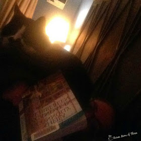 When I get to the end of my day and tuck up to read my book I am often joined my my reading companion Squirrel the cat. When I am not feeling well she tends to be a tad over protective and possessive. While the photo is not overly flattering of either of us, it is nice to know that the cat is there for comfort and to make sure I don't go anywhere. Sleeping on my face and shoulder in this photo, while I tried to read made it next to impossible so I reluctantly put the book down and went to sleep. You may ask why not move her...I tried she came back and then covered my entire head and face so really this position shown above was actually more comfortable.